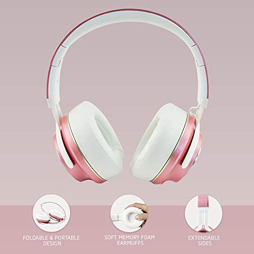 Bluetooth Koptelefoons, PowerLocus P3 draadloze Over-Ear Koptelefoon P3 Inklapbaar – Bluetooth 5.0 – Met microfoon (Rose Gold Matt)