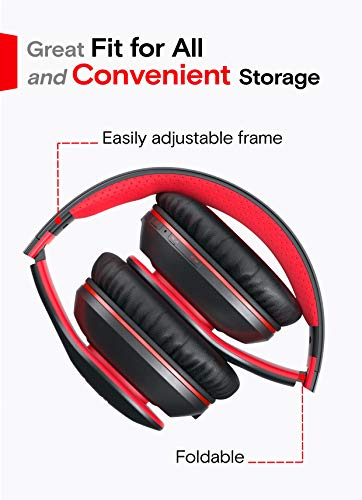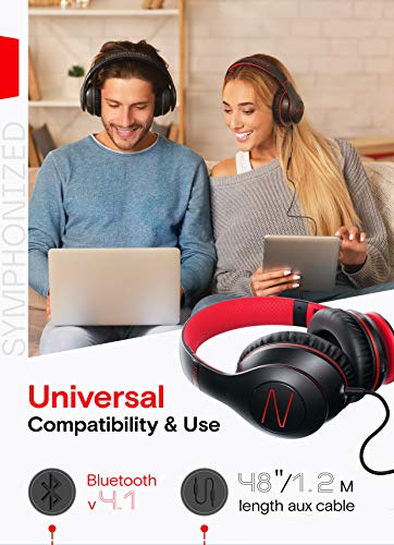 Specification: Symphonized Blast Opvouwbare Koptelefoon Over het Oor met Microfoon & Kabel voor Bedraad Gebruik, Bluetooth Draadloze Koptelefoon, Verstelbare Stereo-Koptelefoon voor Computer, Laptop & Mobiele Telefoon (Rood)